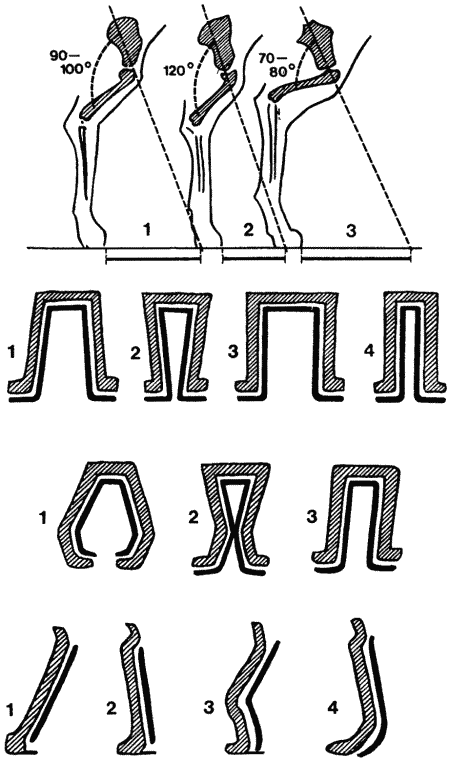 Собаки с резко выраженными углами скакательных сочленений, быстроаллюрные обычно имеют наиболее острый угол плечелопаточных сочленений. Более тяжелые, не приспособленные для быстрых передвижений, имеют и более тупые углы сочленений у передних и задних конечностей.