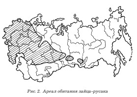 беляка, и достигает 50 км/ч. Русак изначально степное животное, но широко распространен и в зоне лесостепи. С развитием сельского хозяйства и в связи с вырубкой лесов ареал русака значительно расширился (рис. 2).