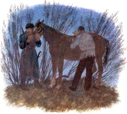 Шьёт доктор, а солдат по сторонам смотрит. И конь стоит смирно. Не заржёт, не дёрнется. Понимает: шуметь нельзя.