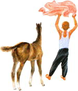 Он погрозил Гошке пальцем и, тяжело дыша, накинул на шею Горбунку верёвку.