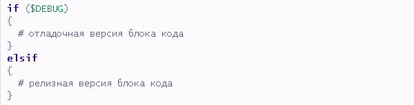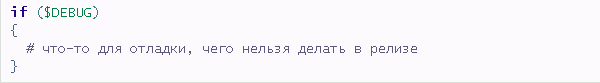Пара слов о реализации. Я предпочитаю заводить переменную вроде $DEBUG. В разработке она = 1, иначе это релиз. И теперь можно писать либо так: