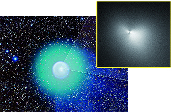глыбу километра четыре в поперечнике. Совершенно неясно, каким образом некая локальная катастрофа в ядре породила не направленное, а почти сферическое расширение комы. При этом ученые сходятся во мнении, что собственное ядро комета сохранила.