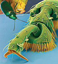 Ученых давно интересовало, как некоторые ящерицы и многие насекомые бегают по потолкам и вертикальным гладким поверхностям, но лишь в последние годы эти механизмы были детально изучены. В процессе эволюции разные виды независимо пришли всего к двум основным структурам - гладким подушечкам, как у кузнечиков, и волосатым лапкам, как у жуков. У жуков есть множество различий в деталях строения, но в любом случае лапа обеспечивает хороший контакт с любой гладкой или шероховатой поверхностью и удерживает на них насекомое за счет сил Ван-дер-Ваальса.