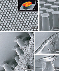 Строение поверхности искусственной полимерной ленты сравнительно просто. Она покрыта расположенными в шахматном порядке с шагом около полусотни микрон волосками высотой несколько десятков микрон. Каждый волосок венчает напоминающая присоску грибовидная шляпка на утонченной ножке, облегчающей поворот на нужный угол. Эта структура обеспечила прочность сцепления со стеклом в 60 килопаскалей, что в несколько раз выше возможностей всех конкурирующих разработок. И этот результат уже не так далек от способностей жуков, пауков и гекконов (около сотни килопаскалей).