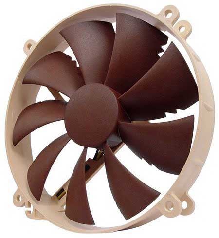 Автору обзора он напомнил колесо от телеги, тем паче что выполнен в коричневых тонах. Девять лопастей имеют знакомые патентованные зазубрины, а вот крышка, закрывающая ротор вентилятора, получила апгрейд обычную сменила металлическая. Плавный запуск электродвигателя и автоматическое распределение смазки внутри подшипника качения продлевают срок службы до 150000 часов вечность по компьютерным-то меркам.