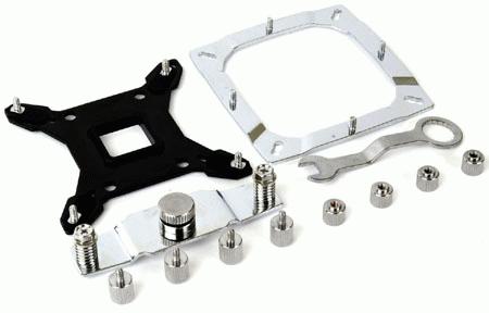 Что касается сборки вообще, то на странице продукта есть флэш-мультик, наглядно и понятно иллюстрирующий, как один за другим устанавливаются бэкплейт и другие элементы. Как можно видеть, для обеспечения совместимости с тремя сокетами (LGA1366, LGA1156 и LGA775) производитель предложил изящное решение сдвигать трёхпозиционный фиксатор. Тем самым и на материале сэкономлено, и нам меньше мороки.