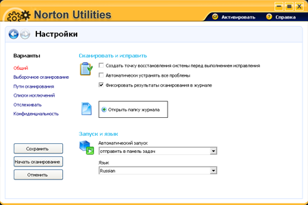 Не всё ладно и в настройках Norton Utilities. Они, во-первых, странным образом перемешаны с элементами