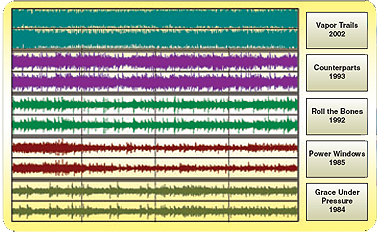 Впрочем, лучше всего ситуацию иллюстрирует подготовленное Рипом Роуэном сравнение звучания альбомов группы Rush с 1984 по 2002 год (стиль группы при этом не слишком изменился). И если вы не слышите разницу, просто посмотрите на нее.