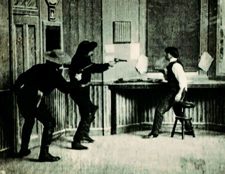 Theres one extra shot, the best known in the film, showing one of the robbers firing point blank out of the screen. This was, it seems, sometimes shown at the start of the film, sometimes at the end. Either way, it gave the spectator a sense of being directly in the line of fire.