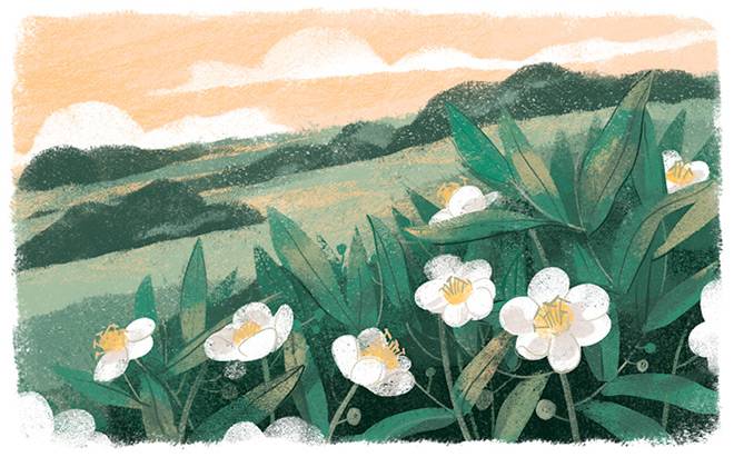 Цветы спустя какое-то время завяли и опали. Удивились люди и стали срезать стебли и листья ножами и топорами. Принесли их домой, высушили вот и получился чай. А после бросали они растение в воду, вываривали, сдабривали маслом и молоком, солили и пили сытный чай, благодаря ламу.