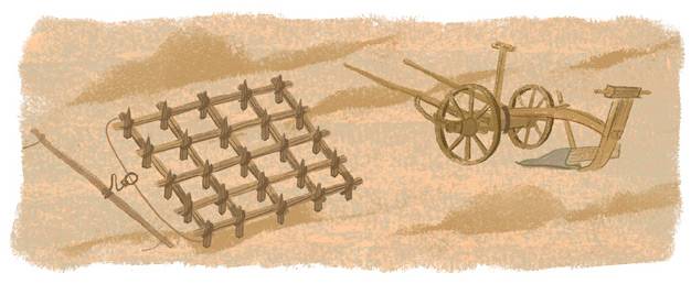 Смеются они надо мной, а сами и пахать-то не умеют! Чтобы землю обработать, нужны лошади да плуг деревянный с железным резцом. А после еще борону сделать комья земли разбивать.