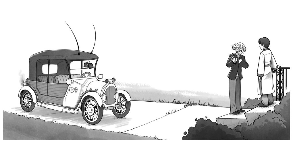 Я устремился в погоню и остановился, только добравшись до входной двери. У поворота на нашу дорожку стояла припаркованная машина. Это был весьма старый автомобиль.