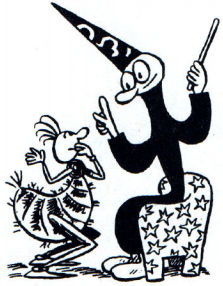 Люба блохо, сказав їй чарівник, це не так просто стати людиною. Ти стрибаєш гоп-тут, гоп-там! А людині так не можна. Спочатку тобі треба навчитися добре ходити, як ходять люди.