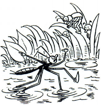 У воді щось заворушилось. І одразу ж загриміли фанфари сурмачів-джмелів і жуків, хорова капела одягнених у біле комарів заспівала тоненькими голосами величальну пісню, а позаду кілька тріскунців вистрелили залпом із мортир.