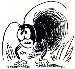 Сюр-р-ргу! відказав йому Цвіркун і, щось буркочучи, знову шмигнув у нору. Проте, мабуть, передумав, бо раптом вистромив голову знову й запитав у Ферди: