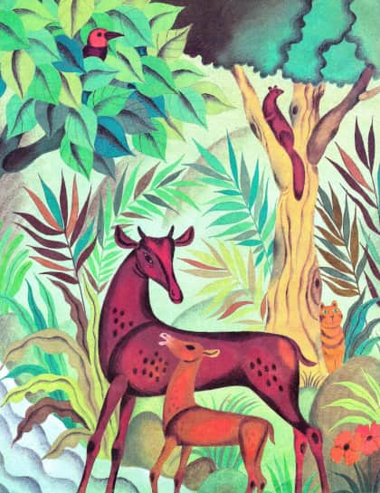 Каждый год Джой прилетала к Горе и приносила новые семена. Весёлые ручьи бежали по склонам Горы. И земля, орошённая, зеленела, покрываясь травами, цветами и деревьями.