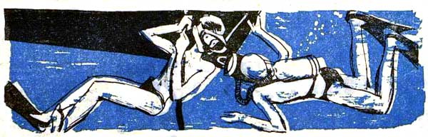 Пока Андре доставал ласт, Гленн ухитрился набрать полную маску воды и, как пробковый поплавок, вылетел на поверхность.