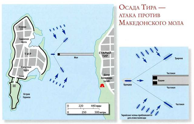 Теперь, когда у Александра был еще и флот, он развил бурную деятельность. Помимо строительства своей эстакады, он еще и затеял атаку Тира с моря.