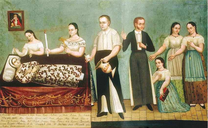Полотно из собрания музея призвано увековечить память безвременно ушедшей из жизни Бернардины Мадруеньо. Стоящий в центре высокий мужчина с кувшином и стаканом в руках по-видимому, брат покойной, заказавший картину: его скорбь от потери близкого человека отражена в надписи, начертанной под изображением. Манера анонимного мастера из региона Халиско напоминает живопись Хосе Марии Эстрады.