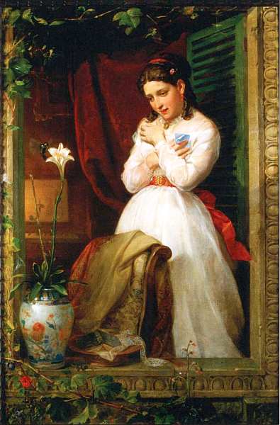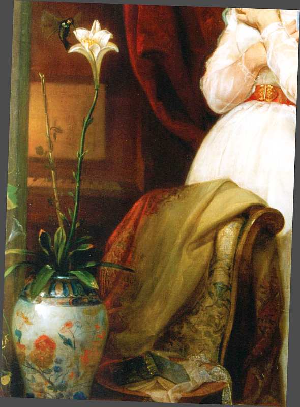 Цветок лилии мотив, объединяющий две картины конца 1860-х: «Любовь колибри» и «Увядший цветок». Несмотря на то что сам художник не проводил смысловых параллелей между ними, критики посчитали произведения «двумя частями одной поэмы». Из оплетенной стеблями растений рамы окна юная девушка в белом платье с умилением смотрит на птичку, порхающую у лилии. К груди она прижимает сложенный листок возможно, письмо от поклонника. Во втором сюжете героиня меланхолически взирает на небеса, стоя рядом со сломанным цветком. Лилия традиционно считается символом чистоты и в религиозном искусстве ассоциируется с непорочностью Девы Марии, в данном случае может символизировать добродетель и неискушенность юности и их утрату. Романтический символизм придает жанровым сценам смысл моральной аллегории.