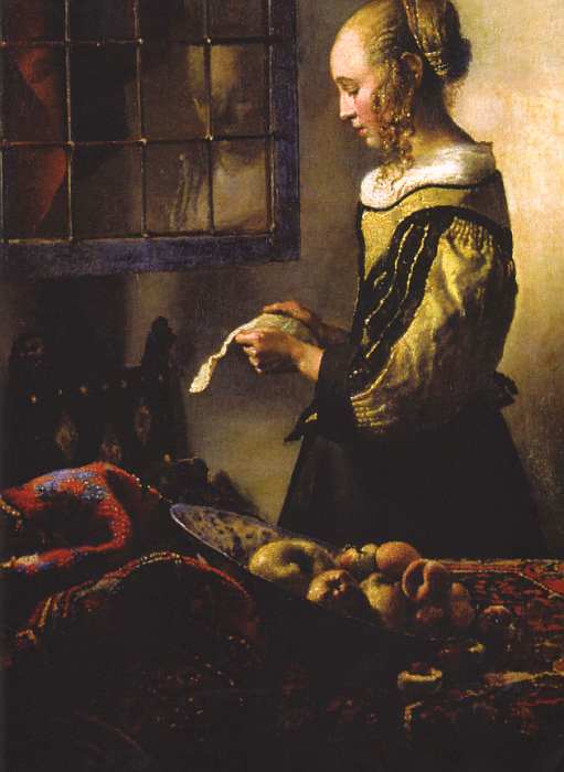 Мотив письма часто встречается в картинах Вермера и всегда воплощен в образе героини, читающей послание от возлюбленного, который находится далеко от нее.