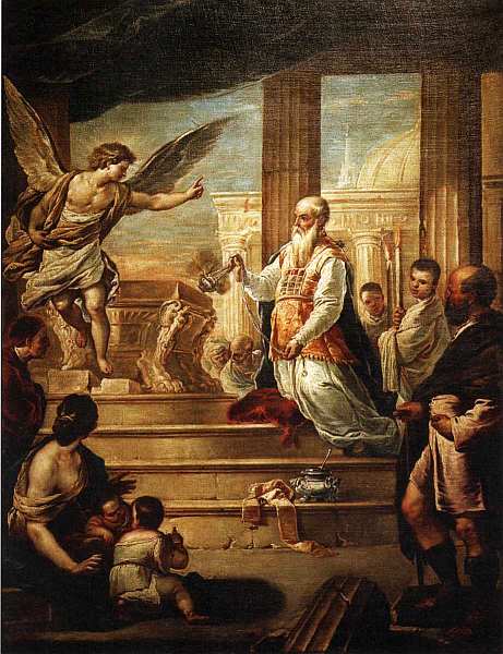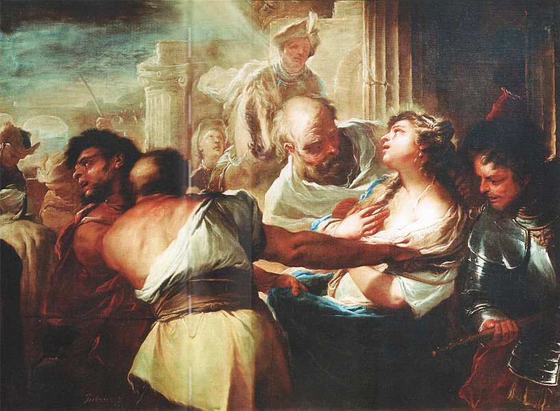 Представленное полотно монументальных размеров принадлежит кисти плодовитого итальянского мастера Луки Джордано. Он был одним из самых успешных неаполитанских учеников великого испанца Хусепе де Риберы, также проходил обучение в Риме под руководством знаменитого Пьетро да Кортоны. Мастер много копировал произведения Рафаэля и Микеланджело, выработав виртуозную и быструю манеру. Любимой тематикой художника являются мифологические, религиозные и исторические сюжеты. Он стремился развить мастерство драматической компоновки, желая достичь театральности и одухотворенной торжественности происходящего. Полотна Джордано стали классикой живописи в стиле барокко. Современному зрителю, который привык к подобным работам, порой бывает сложно разобраться в авторском своеобразии художника и том, почему его картины так популярны.