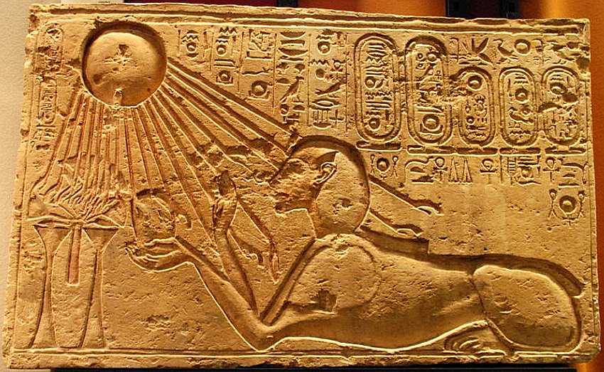 Хотя религиозные реформы Эхнатона исключили из египетского искусства некоторые из популярных мотивов, фараон остался привержен образу Сфинкса и часто сам изображался как это фантастическое существо. В эпоху Древнего царства Большой Сфинкс в Гизе символизировал принесение властителем дара богу солнца Атуму. Во времена XVIII династии этот монументальный памятник был переосмыслен, и Сфинкс сам стал восприниматься как бог солнца.