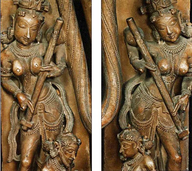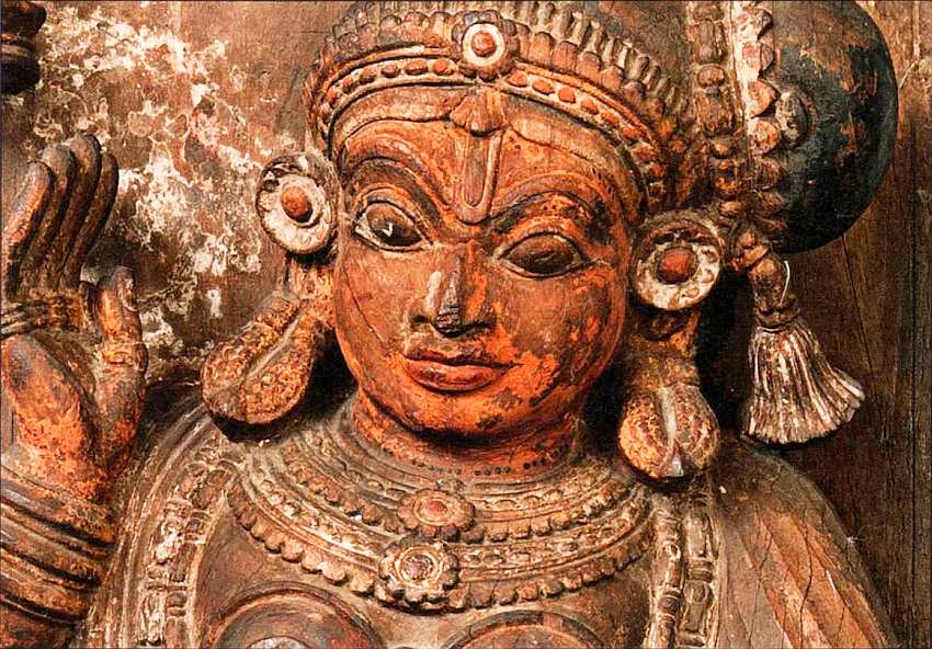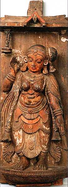 Данная деревянная скульптура являлась, по всей видимости, частью интерьера храма. Она представляет танцующую женщину, которую было принято называть «мохиня» («прелестница», «чаровница»). У героини сложная прическа (большой пучок волос перехвачен сбоку специальным украшением), в ушах массивные серьги, на шее многорядное ожерелье, на руках и ногах браслеты. На сари спереди веерообразные декоративные складки. На плечи женщины накинута шаль (чаддар), тяжелые кисти на длинном шнуре, спускающиеся по бокам, атрибут традиционного костюма. Танец, который они исполняли (мохиниаттам), до сих пор является народным в штате Керала (Малабарское побережье, юго-запад Индии). Он повествует о вспенивании океана, когда Вишну превратился в мохиню, которая должна была потчевать богов нектаром.