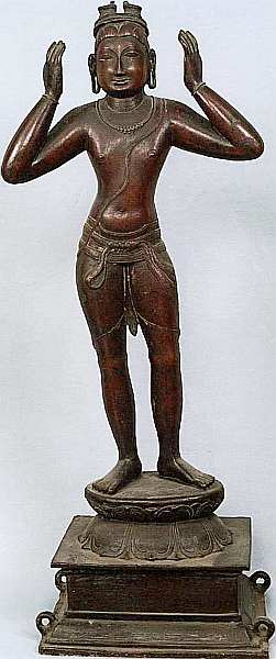 Данная скульптура редкий пример воплощения истории из «Рамаяны». Перед зрителем Бхарата, на голове у которого, на небольшой подушке, находятся сандалии Рамы. Герой стоит на двойном лотосовом пьедестале с поднятыми руками, как бы поддерживая ношу. На Бхарате ожерелье, браслеты на запястьях, священный шнур брахмана, дхоти на застежке, украшенной лентами. Скульптура воплощает верность брата своему долгу и обладает большой эмоциональной выразительностью.