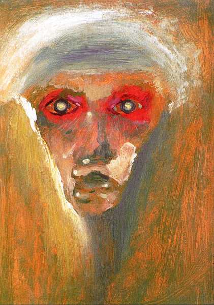 Данная работа первая официально выставленная картина композитора. Она исполнена в стиле экспрессионизм, который получил развитие в Германии и Австрии благодаря знаменитым мастерам Оскару Кокошке и Эгону Шиле. Изображенное существо с красными глазами может рассматриваться как символ человеческих страданий и тревог. Художник пишет его, чтобы выразить свое состояние, индивидуальное видение реальности. Беспощадный по яркости оттенок красного сочетается с нейтральным коричневым. Колорит придает картине атмосферу безысходности. Удел человека, по мысли Шёнберга, помешательство или невыразительная монотонность будней.