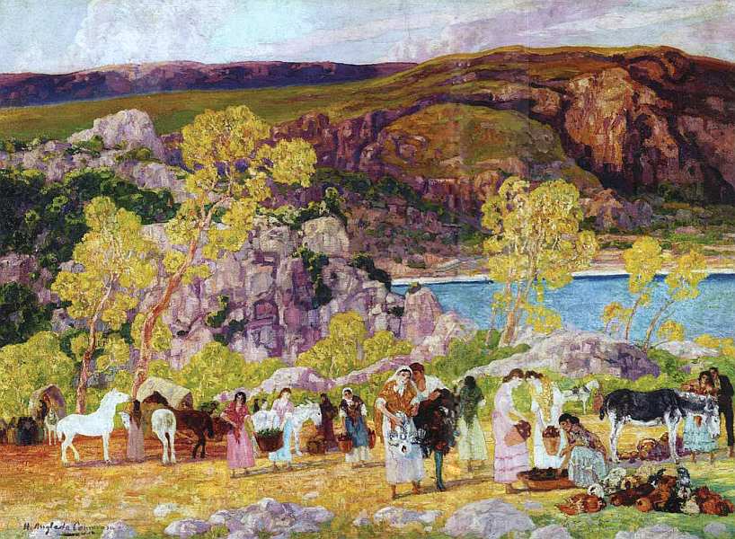 В представленной поздней работе с изображением народного праздника видно блистательное подтверждение сказанному. Сияющие, яркие краски пронизанного светом пространства сами по себе рождают ощущение веселья. Такие пейзажи живописец создавал на протяжении всей жизни, однако в последнее десятилетие они были редки.