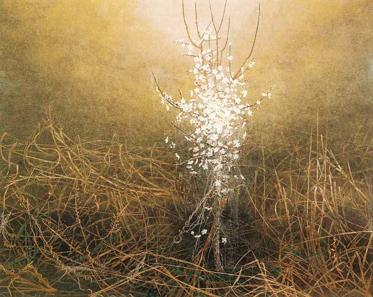 Унылый урбанистический сюжет старые троллейбусы в автопарке, на голой, неуютной площадке И только кружевные тени деревьев, наброшенные на них, и асфальт напоминают о связи с природой, которой так не хватает человеку в современном мире. А может быть, это тени исчезнувших деревьев? Во всяком случае, щемящая нота одиночества, потерянности здесь выражена необычайно остро, с присущей японским художникам тщательностью деталей, не исключающей цельности видения и поэтичности мировосприятия.