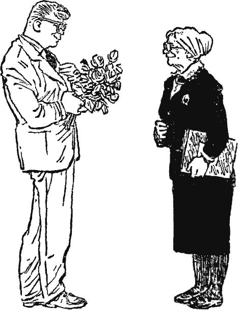 Преподносит ей букет: