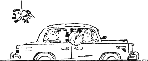 Ворона. Скорррей! Скорррей! Скорррей!.. (Обгоняет «Москвича» и улетает.)