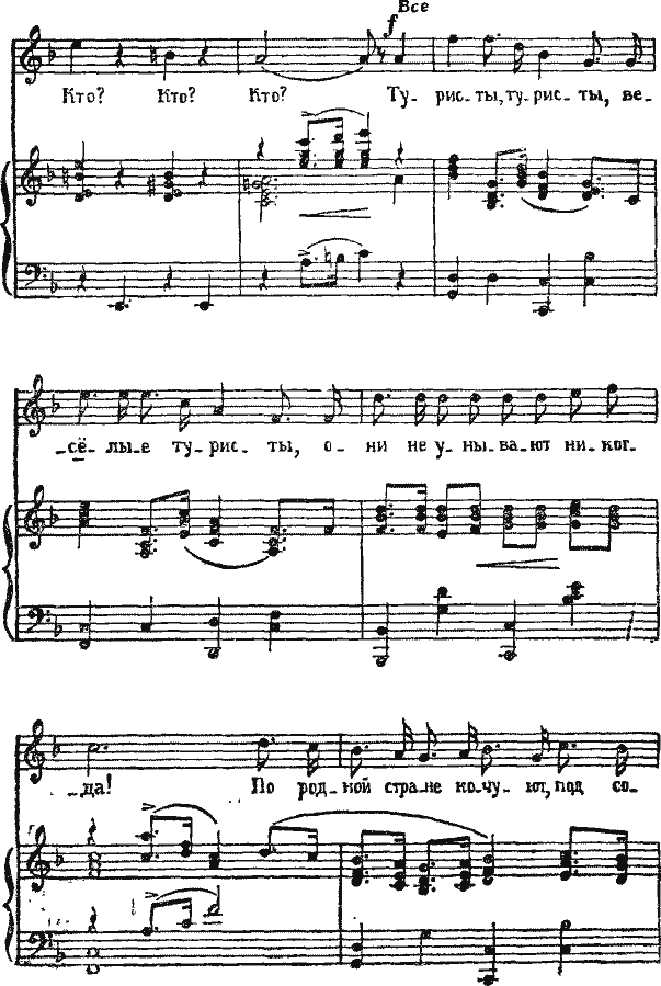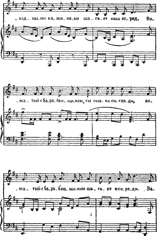 Автор. Ах, вот вы где? Что же вы отстали? Я за вами вернулся. Там так весело! Впереди идёт трубач, играет на трубе, за ним Том, у него на спине сидит Зоя, а рядом идёт Петька, а позади народу-у-у!.. Видимо-невидимо!.. Пошли скорей, догоним их! Только я что-то должен был сказать дайте-ка вспомнить Ах, да!.. (Поёт).