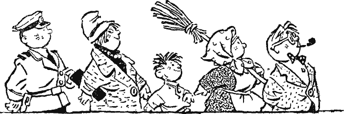 Милиционер. Граждане, только соблюдайте порядок. Не нарушайте правила уличного движения!