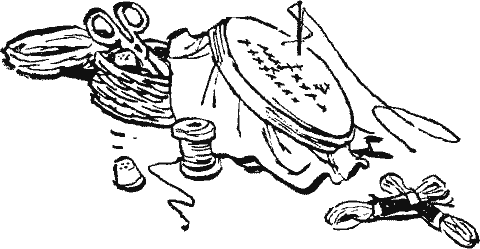Вышивает со стараньем.