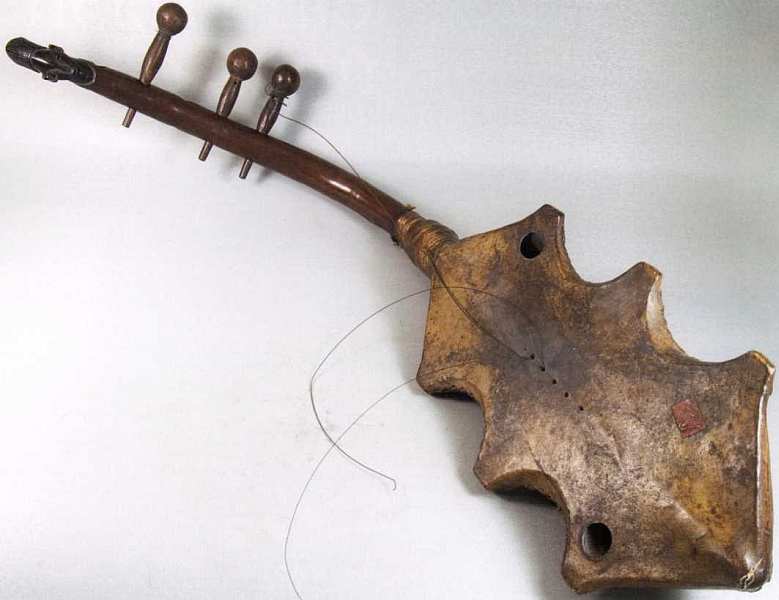 Что касается струнных инструментов, то они дают представление о музыкальном строе: количество струн доказывает, что они служат для исполнения музыки, задуманной в системе пентатоники (пятизвучия). Иными словами, поскольку конструкция инструментов, таких, как данная арфа, не предоставляет возможности извлекать из одной струны больше одного звука (у них отсутствует гриф, как, например, у скрипки, позволяющий посредством прижимания к нему струны использовать разные ее отрезки и тем самым получать звуки разной высоты), вся музыка для этих инструментов ограничивается пятью звуками. Примечательно, что в строении струнных инструментов африканские мастера использовали такие же элементы, как и европейские, например резонансные отверстия в деке.