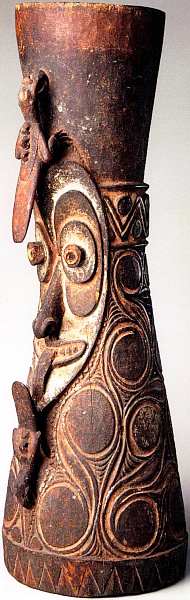 Форма изделия, как считают исследователи, указывает на то, что оно принадлежало небольшому народу ятмул (общей численностью примерно 15 тыс. человек), проживающему на территории Папуа Новой Гвинеи. Боем в барабаны ятмулы отмечали победу в сражении. Инструменты такого типа, закрытые сверху мембраной, сопровождали людей этого племени в праздниках и церемониях окончании строительства дома, спуске на воду нового каноэ или похоронах.
