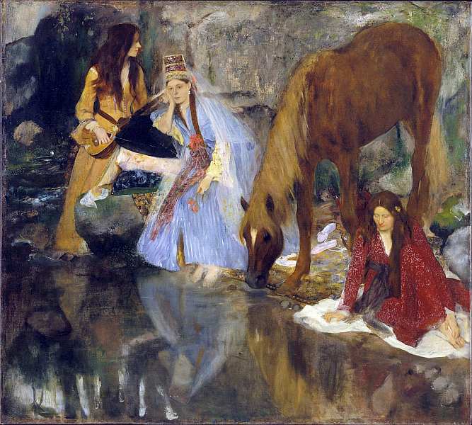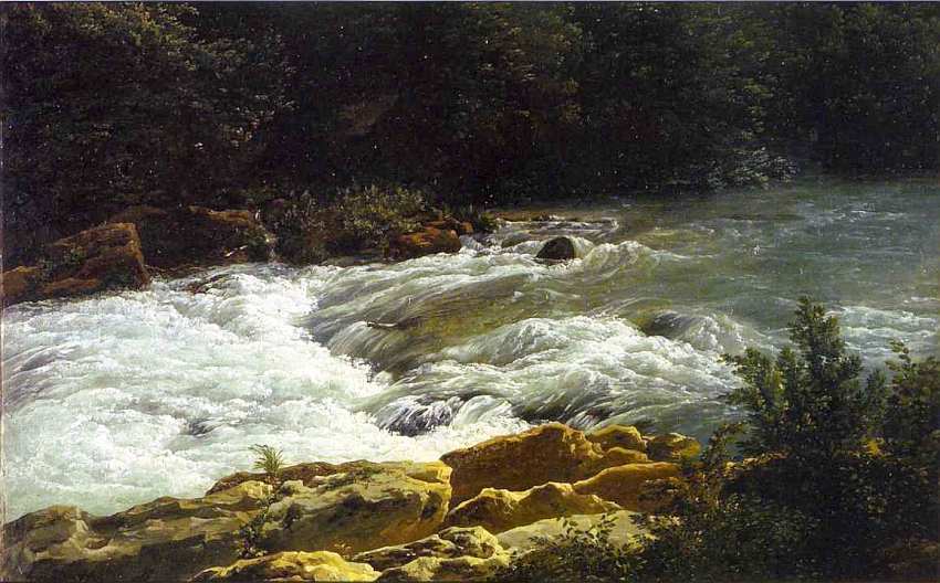 Горные речки и ручейки дали живописцу возможность присмотреться, полюбить и мастерски передать контрасты природы, где обнаженные породы омываются стремящимися потоками воды и создаются завораживающие вихри, воспроизвести которые на картине было увлекательнейшей задачей. Бруклинская работа подлинный шедевр художника. Восхищают красочная палитра, богатство оттенков водной стихии, динамизм. Все передано с поразительной реалистичностью, но вместе с тем это не холодная фотография: пейзаж согрет теплом души Бидо.