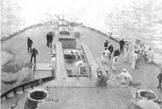 Броненосец Канопус" в 1899 г. на достройке (вверху) На баке и юте одного из английских броненосцев