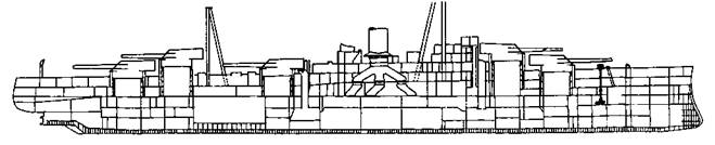 Линейный корабль New York. 1945 г. (Продольный разрез)