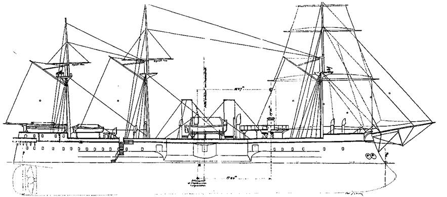 Наличие торпедного оружия почти нигде не упоминается, за исключением сообщения 1887 г. [2] о неизвестном числе надводных аппаратов Уайтхеда и данных 1892 г. [5] о 2 аппаратах. Вероятно, до реконструкции их не было вообще.