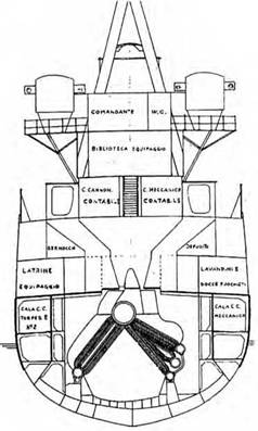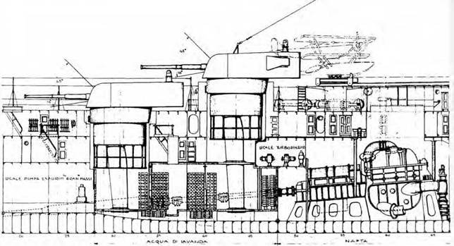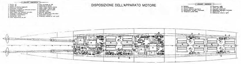 Легкий крейсер типа Луиджи Кадорна (Схема расположения машинных и котельных отделений)