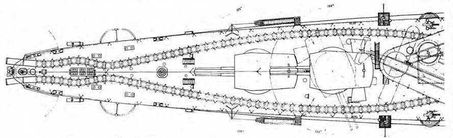 Легкий крейсер типа Луиджи Кадорна (Чертеж кормовой части с указанием мест для крепления мин)