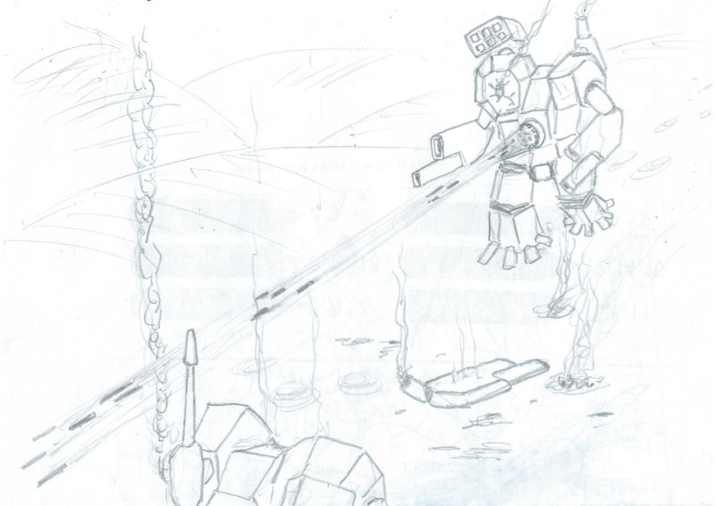 «Голиаф» Эйли, тем временем, достаточно сократил расстояние, чтобы «вмазать» из тяжелой роторно-реактивной пушки. Из-за высокой скорости движения и неровности рельефа удар получился слабый. Огненная дуга почти вся ушла выше мех-доспеха противника, и только последние 3 снаряда удалось скорректировать для поражения цели. Они угодили в РПУ машины Карлсона, повредив «коробку» у него на правом плече. К расстройству Эйли детонации ракет не случилось. Кассета оказалась не заряжена. Понимая, что ее излучатели нуждаются в небольшом ремонте, она снова включила камуфляж и тот час прыгнула, чтоб не дать возможности вражескому ИИ нащупать ее машину по следам. Уже в воздухе она наконец смогла немного расслабиться. Где-то внизу все так же прихрамывая и вращая торсом двигался окутанный дымом и всполохами вражеский «Голиаф».