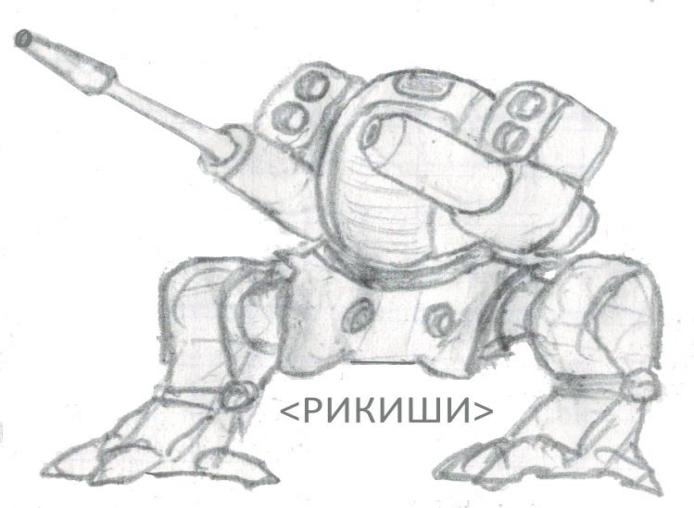 45-тонный приземистый 4-метровый «Рикиши». Он так же имел РПУ хоть и меньших размеров, но главным калибрами были мощная и дальнобойная пушка Лоренца и тяжелый плазмомет.