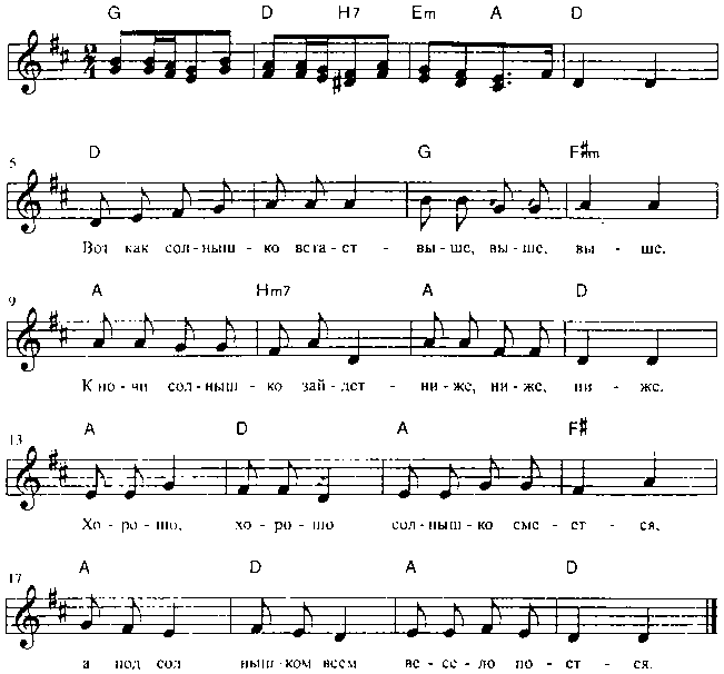 На летнем празднике можно повторить любой выученный в течение года репертуар (кроме песенок о зиме и осени).