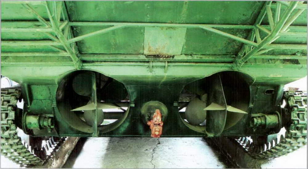 Легкий плавающий танк Т-37 А (1933 год). Его движение на плаву обеспечивал двухлопастный гребной винт; поворот осуществлялся с помощью руля, установленного в потоке винта. Активно использовался в частях и соединениях ОКДВА. Военно-исторический музей бронетанкового вооружения и техники в Кубинке под Москвой