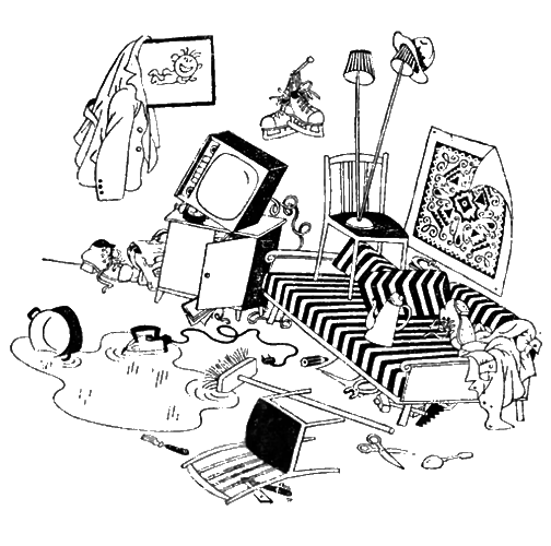 Когда я остался в квартире один, то первым делом отомстил соперникам. В кафель запустил помидором, затем обмакнул палец в варенье и написал: «Кафель дурак». Из паркета я сделал мокрую курицу: вылил на него кастрюлю клюквенного киселя. Надоевшую мне книжонку вышвырнул на балкон под дождь.